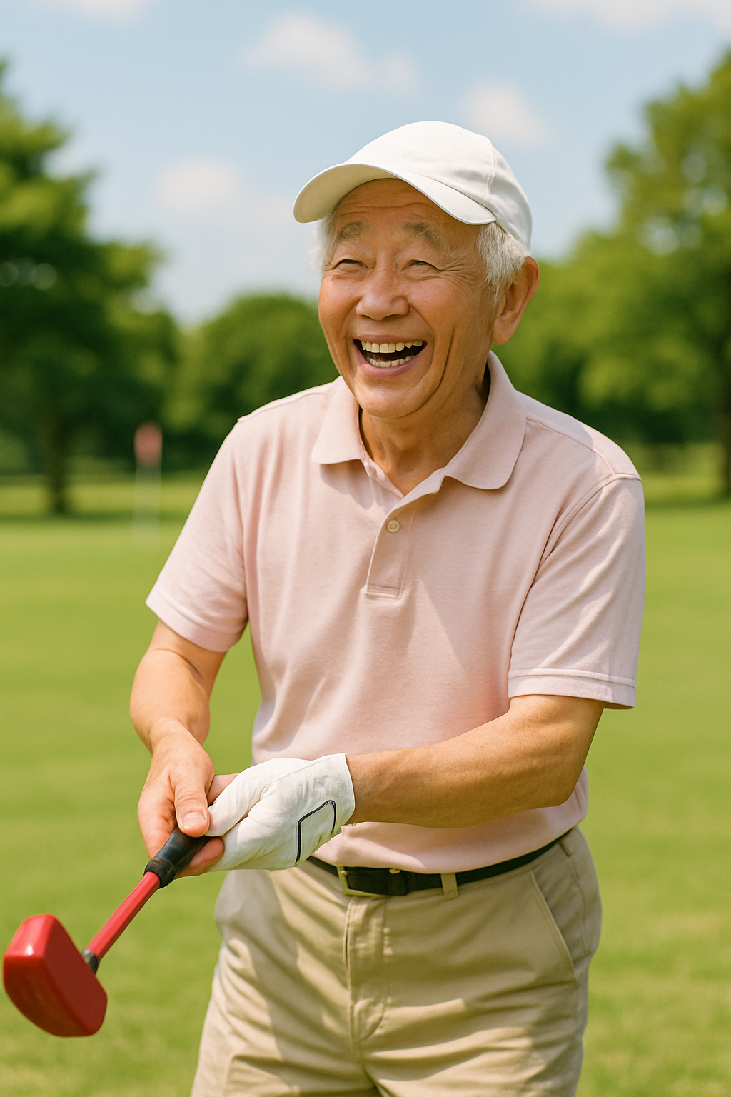 해맑게 웃으며 클럽을 들고